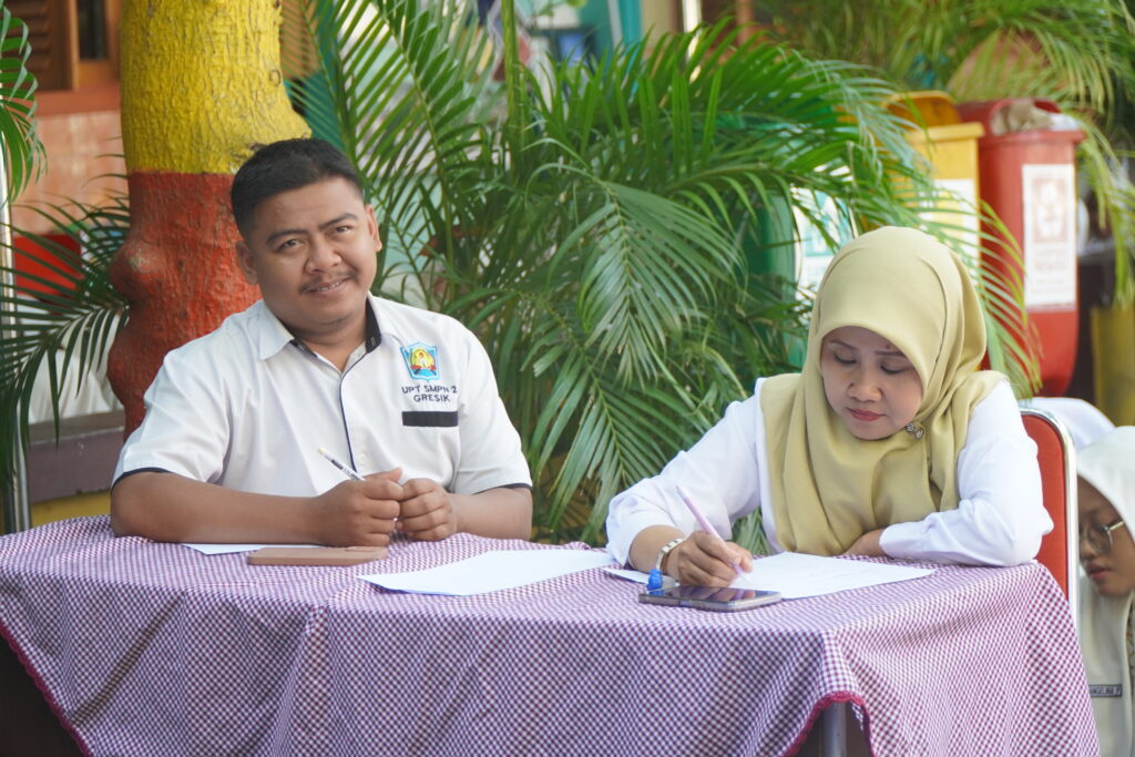 Dalam sambutannya, Bapak Salim selaku Kepala UPT SMP Negeri 2 Gresik menyampaikan rasa syukur dan apresiasi kepada seluruh panitia serta pihak yang telah mendukung terselenggaranya kegiatan ini.
