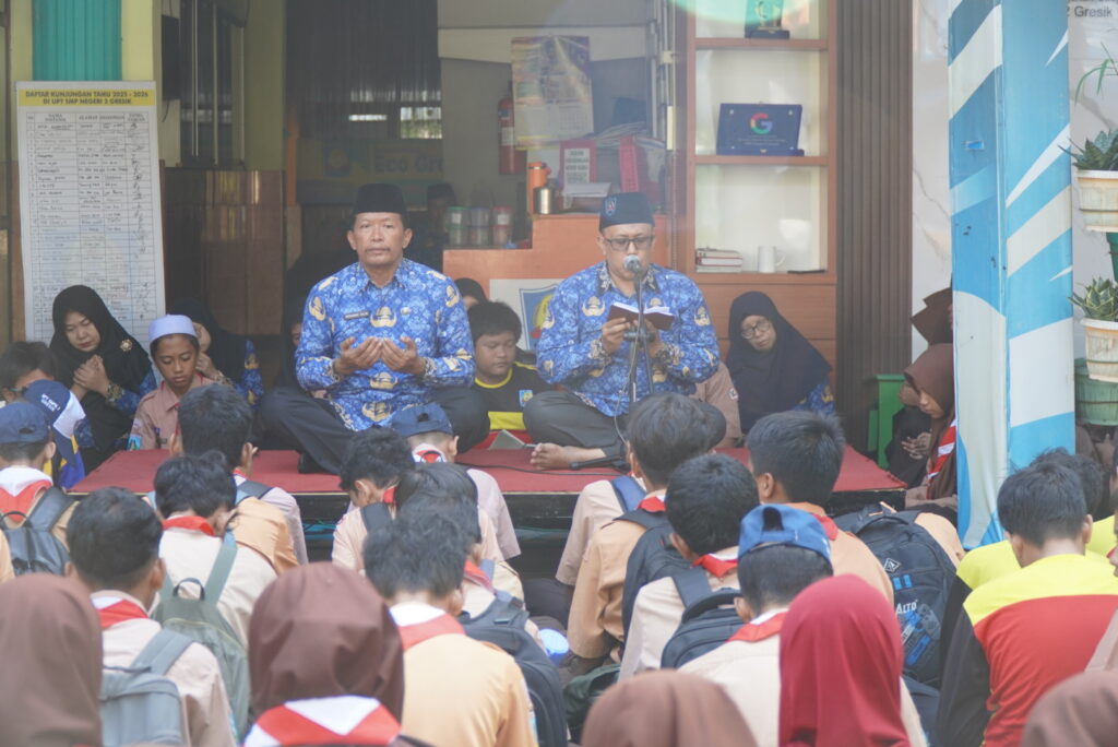 Pada hari Jumat, 17 Oktober 2025, UPT SMP Negeri 2 Gresik menggelar kegiatan rutin Jumat Religi yang diisi dengan doa bersama dan dilanjutkan dengan pengumuman siswa berprestasi serta pemenang lomba Bulan Bahasa. Kegiatan berlangsung dengan khidmat dan penuh semangat di lingkungan sekolah.