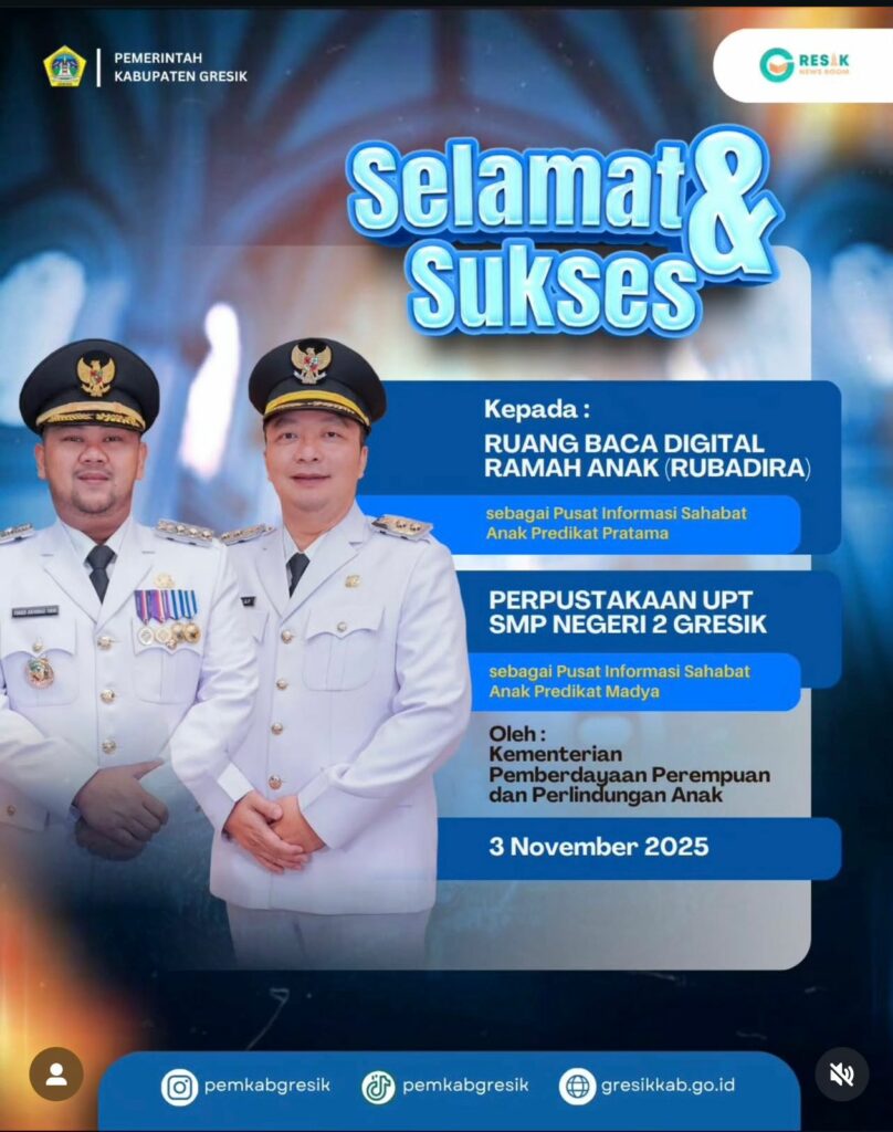 UPT SMP Negeri 2 Gresik berhasil meraih predikat Madya dalam program PISA (Pusat Informasi Sahabat Anak) yang diselenggarakan oleh Kementerian Pemberdayaan Perempuan dan Perlindungan Anak (Kemen PPPA). Pengumuman pencapaian itu dilakukan pada Senin, 3 November 2025. Prestasi ini menjadi kebanggaan besar karena sekolah tersebut dinyatakan lolos dalam penilaian tingkat nasional dengan hasil baik.